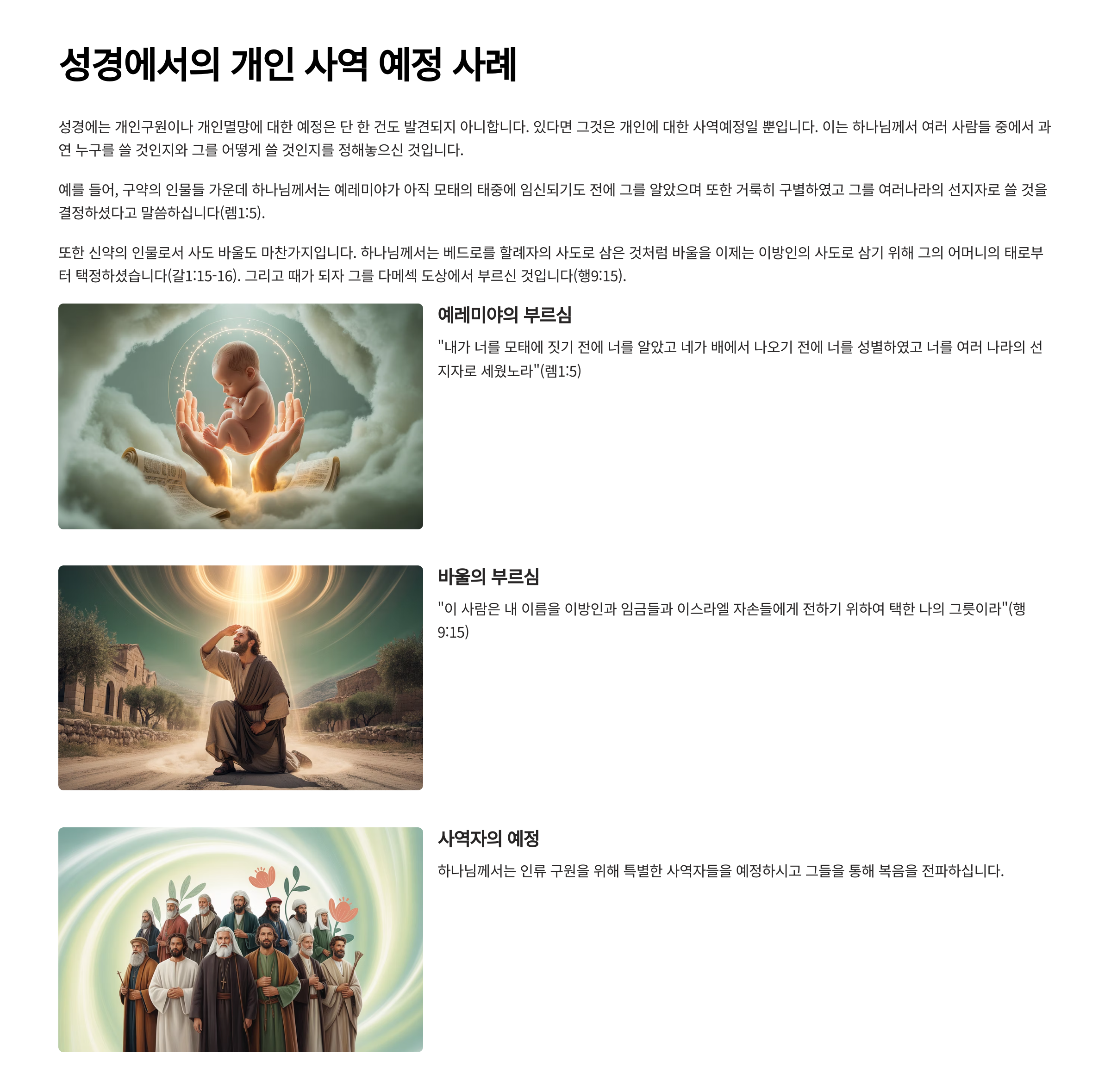 4. 개인구원예정이나 개인멸망예정이 아니라 개인에 대한 사역예정은 어떻게 성경에서 확인할 수가 있는가?