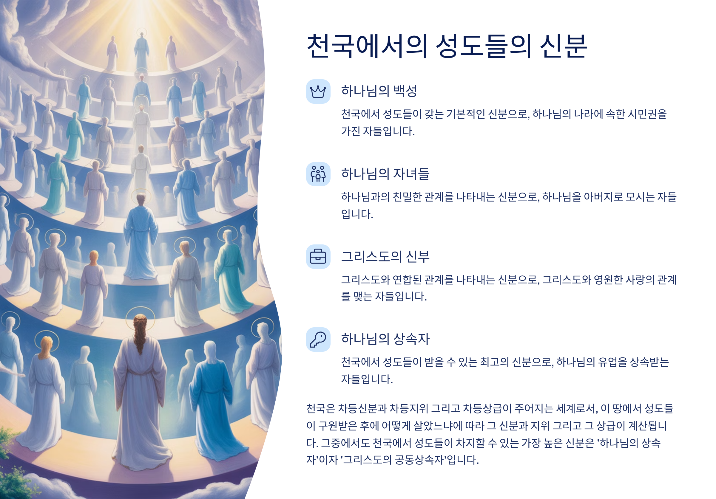 2. 하나님의 상속자이자 그리스도의 공동상속자는 천국에서 어떤 신분에 해당하는가?