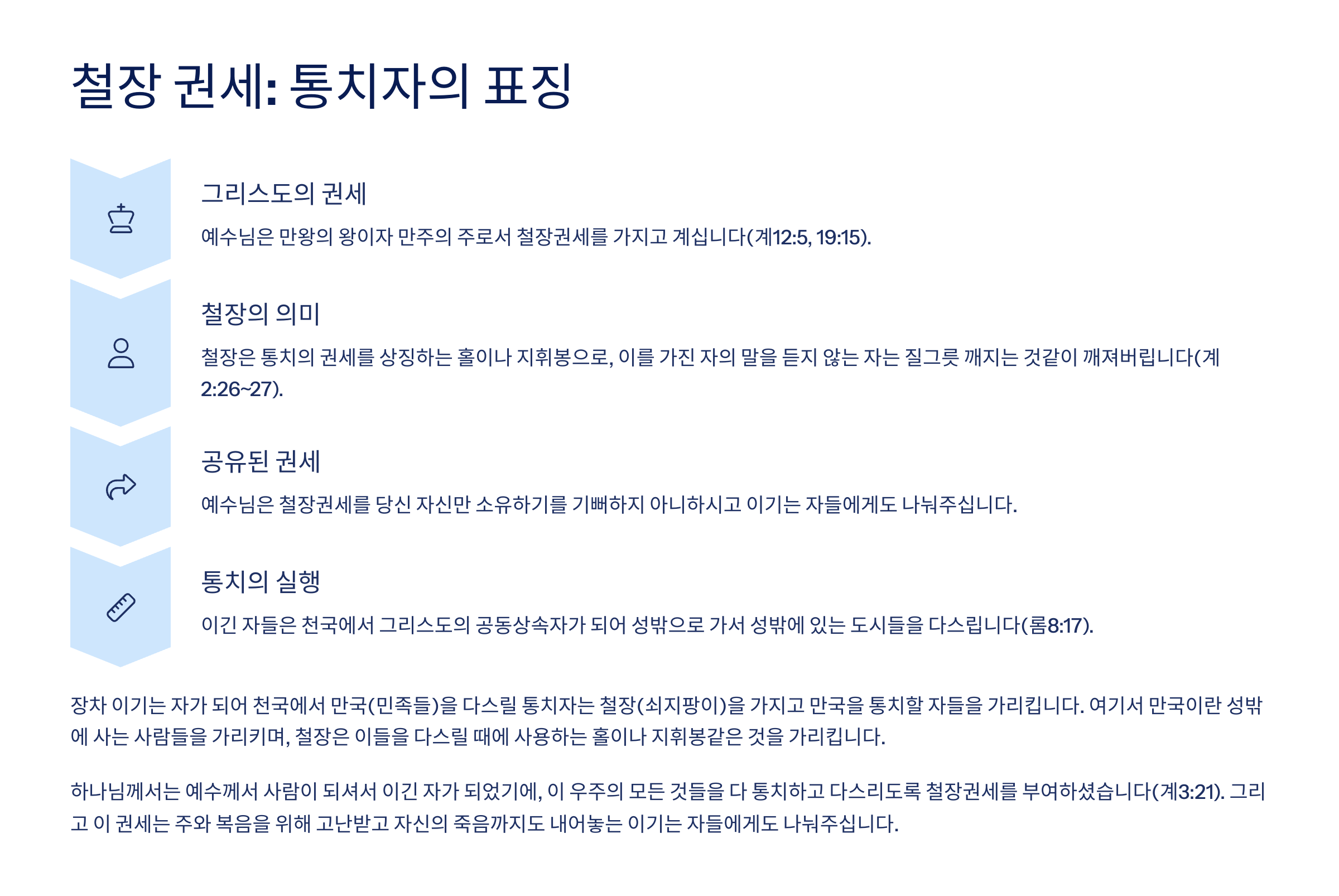 6. 이기는 자로서 장차 만국을 다스릴 통치자에게 주어지는 철장 권세란 대체 어떤 것인가?