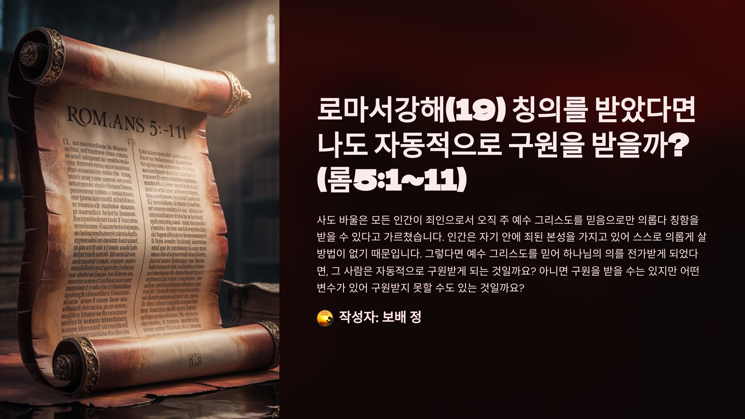 19. [로마서강해(19)] 칭의를 받았다면 나도 자동적으로 구원을 받을까?(롬5:1~11)_2025-05-21(수)
