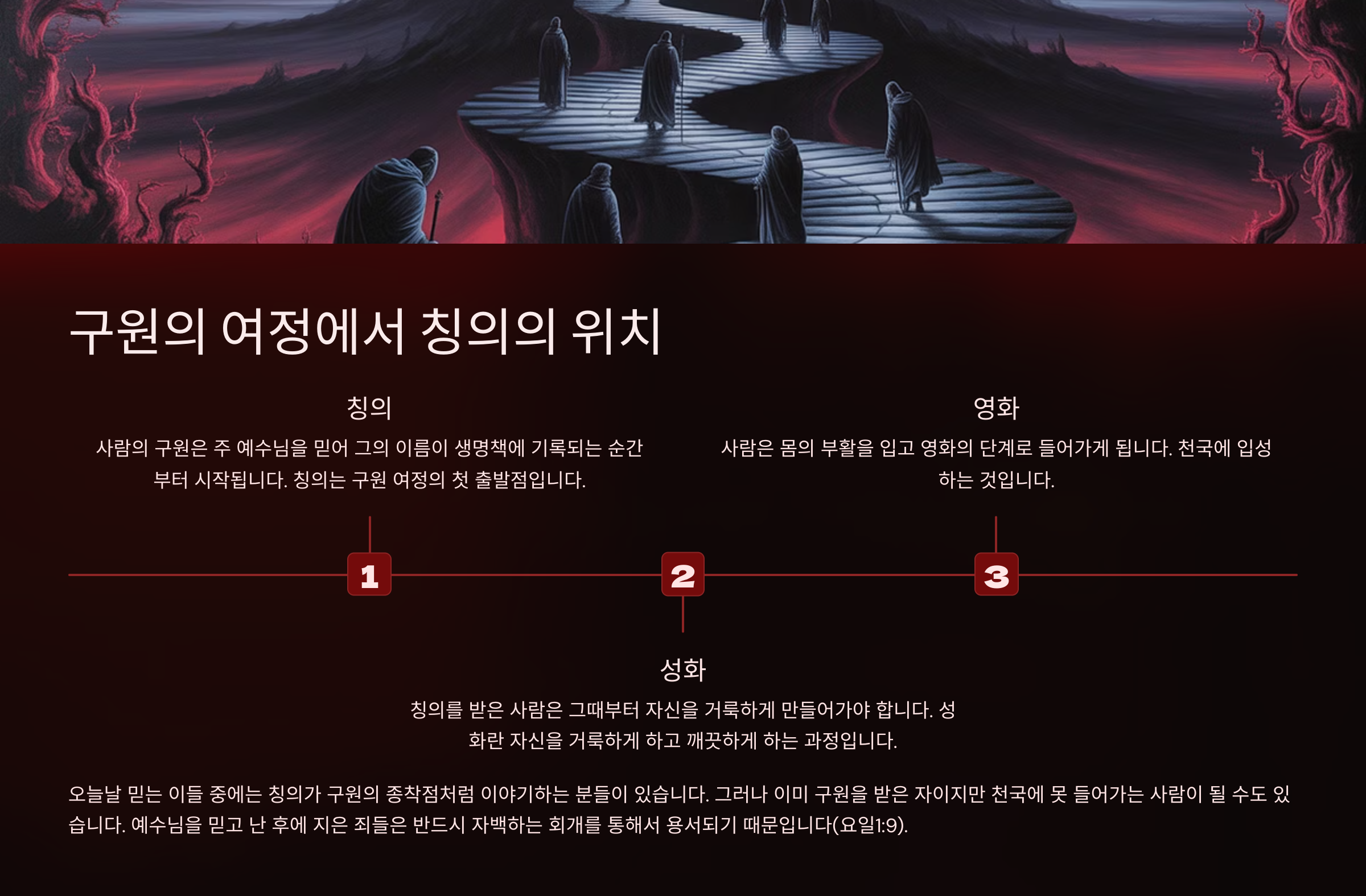 3. 구원의 여정에 칭의는 어떤 위치를 차지하고 있는가?