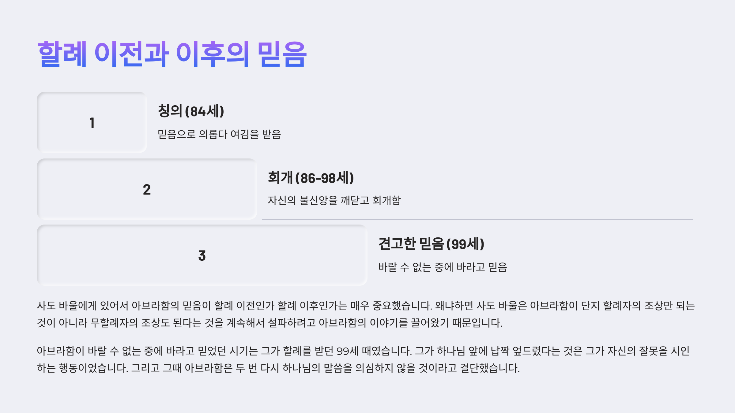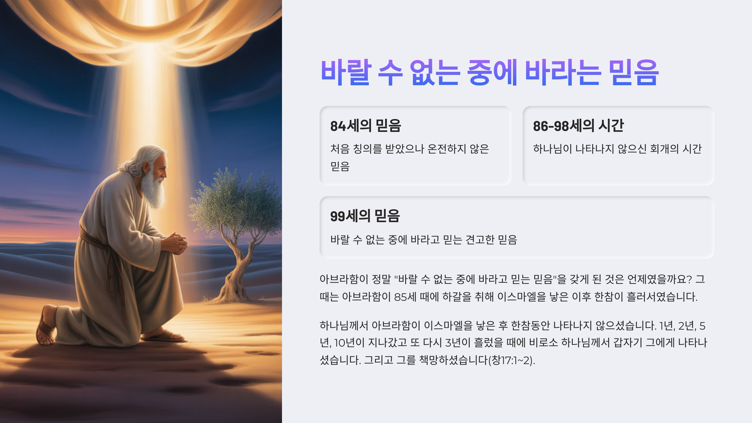 3. 아브라함이 바랄 수 없는 중에 바라고 믿는 믿음을 정확히 언제 갖게 되었는가?