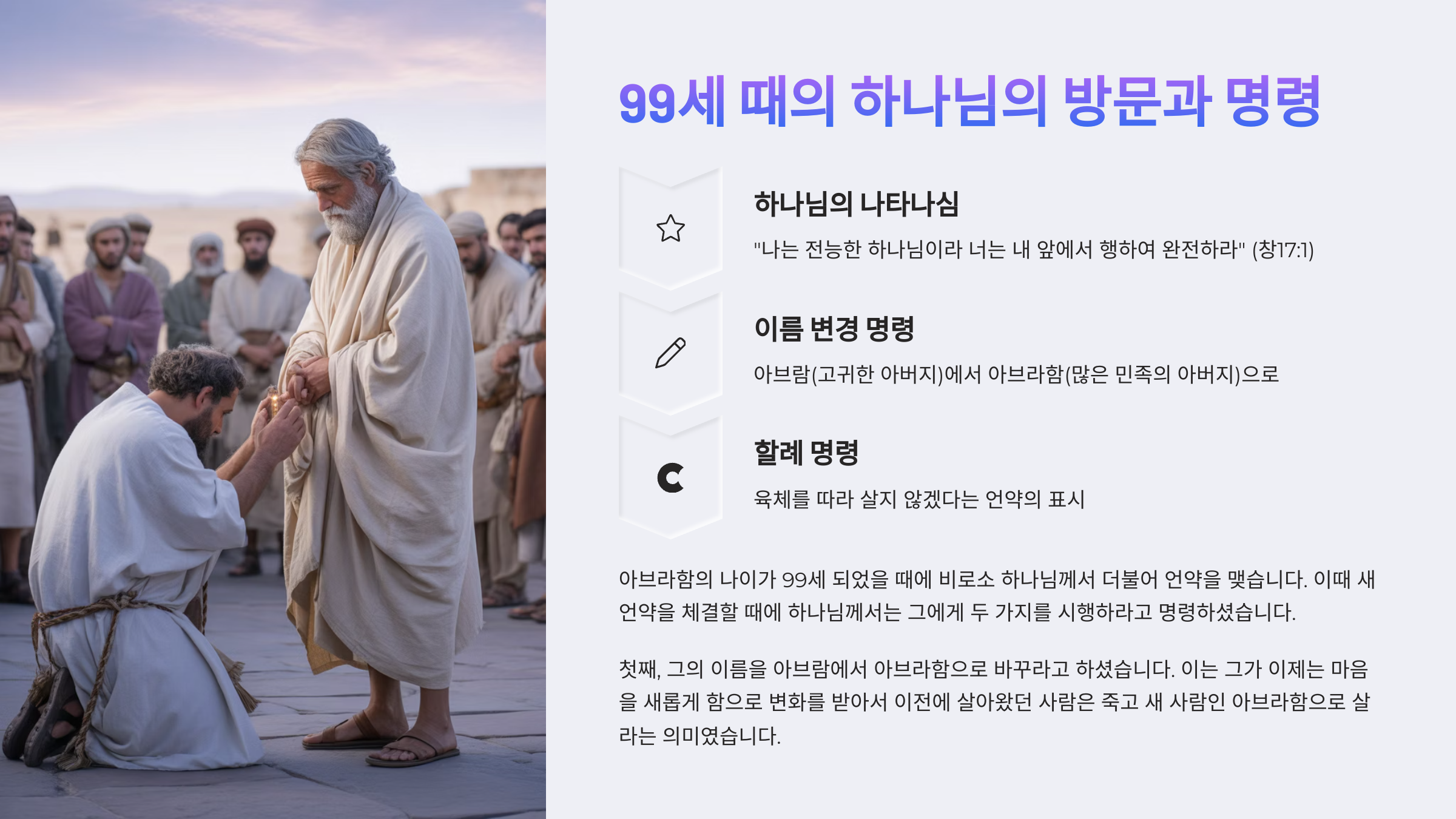 4. 아브라함이 99세 때에 다시 나타난 하나님께서는 아브라함에게 무엇을 명령하셨는가?