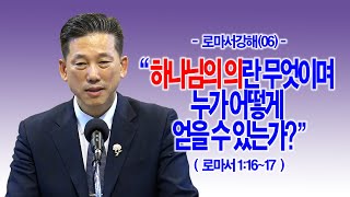제목: [로마서강해(06)] ‘하나님의 의’란 무엇이며 누가 어떻게 얻을 수 있는가?(롬1:16~17)_동탄명성교회 정보배목사 https://youtu.be/ok0FXaLKohY