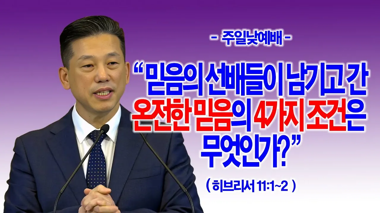 제목: [주일1부] 믿음의 선배들이 남기고 간 온전한 믿음의 4가지 조건은 무엇인가?(히11:1~2)_동탄명성교회 정보배목사