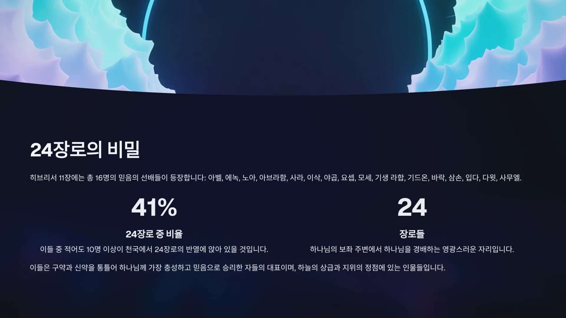 3. 히브리서 11장에 등장하는 믿음의 선배들은 누구이며, 그들의 신앙 이야기가 들려주는 ‘24장로’에 대한 하늘의 비밀은 무엇인가?