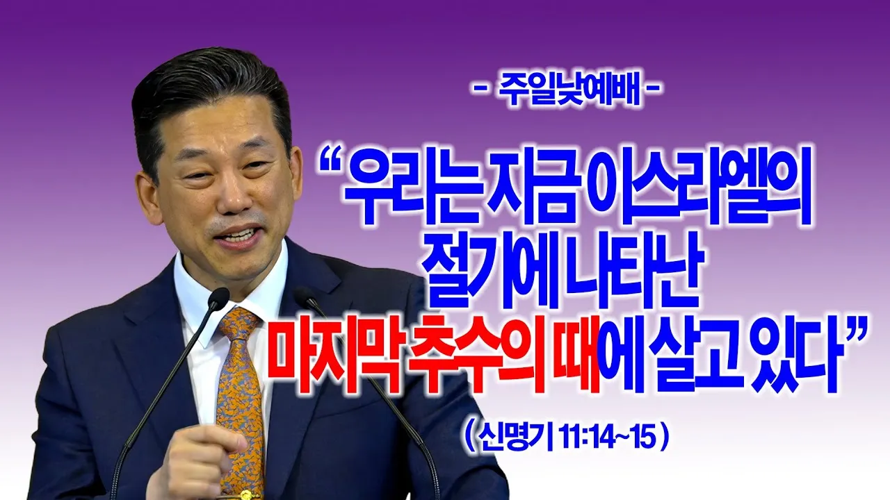2025-10-26(주일) 주일낮2부예배 제목: [추수감사주일] 우리는 지금 이스라엘의 절기에 나타난 마지막 추수의 때에 살고 있다(신11:14~15)_동탄명성교회 정보배 목사 https://youtu.be/0N7UP9BrqXU 1. 들어가며 오늘은 저희 교회가 추수감사주일로 지키는 절기...