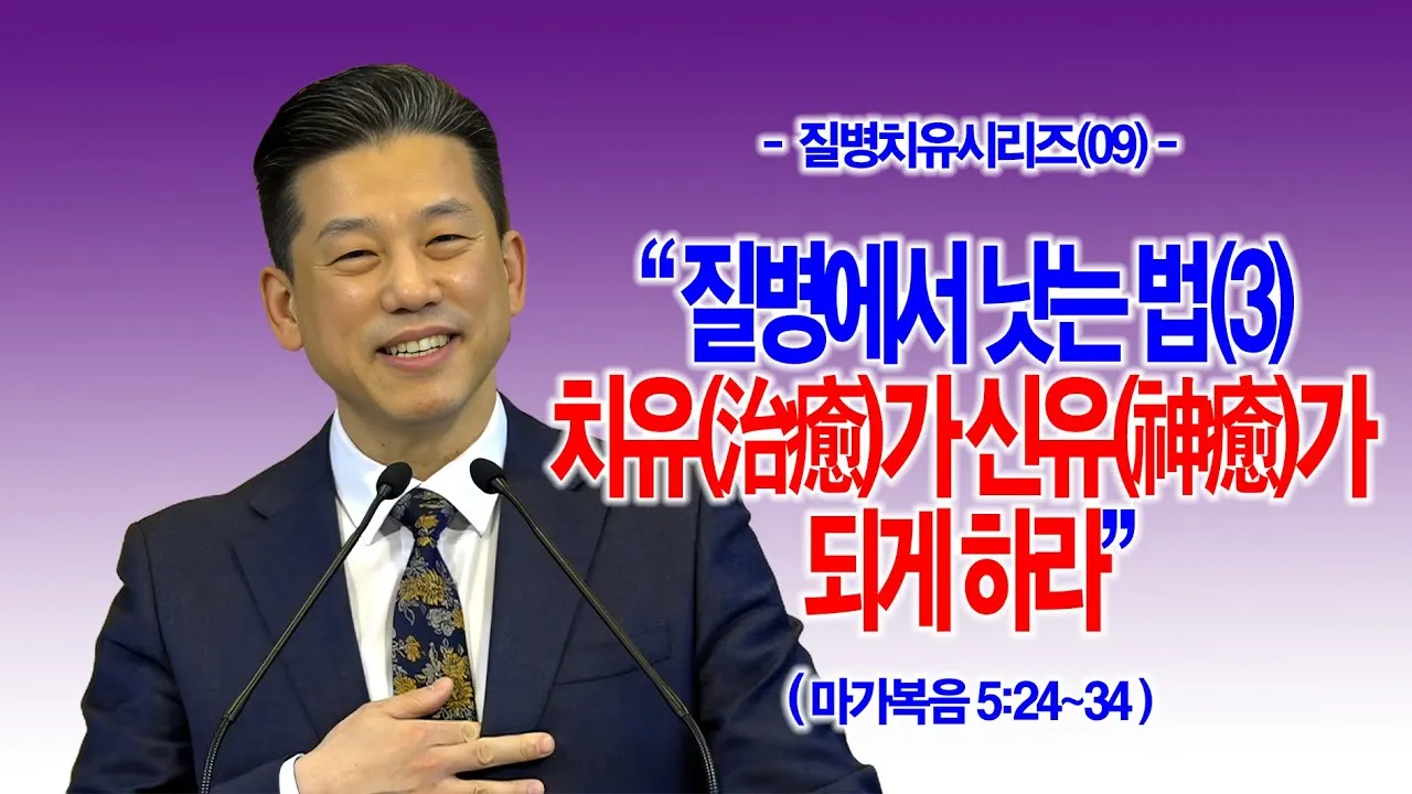 1. [질병치유시리즈(09)] 질병에서 낫는 법(3) 치유(治癒)가 신유(神癒)가 되게 하라(마가복음 5:24~34)_2025-11-23(주일)