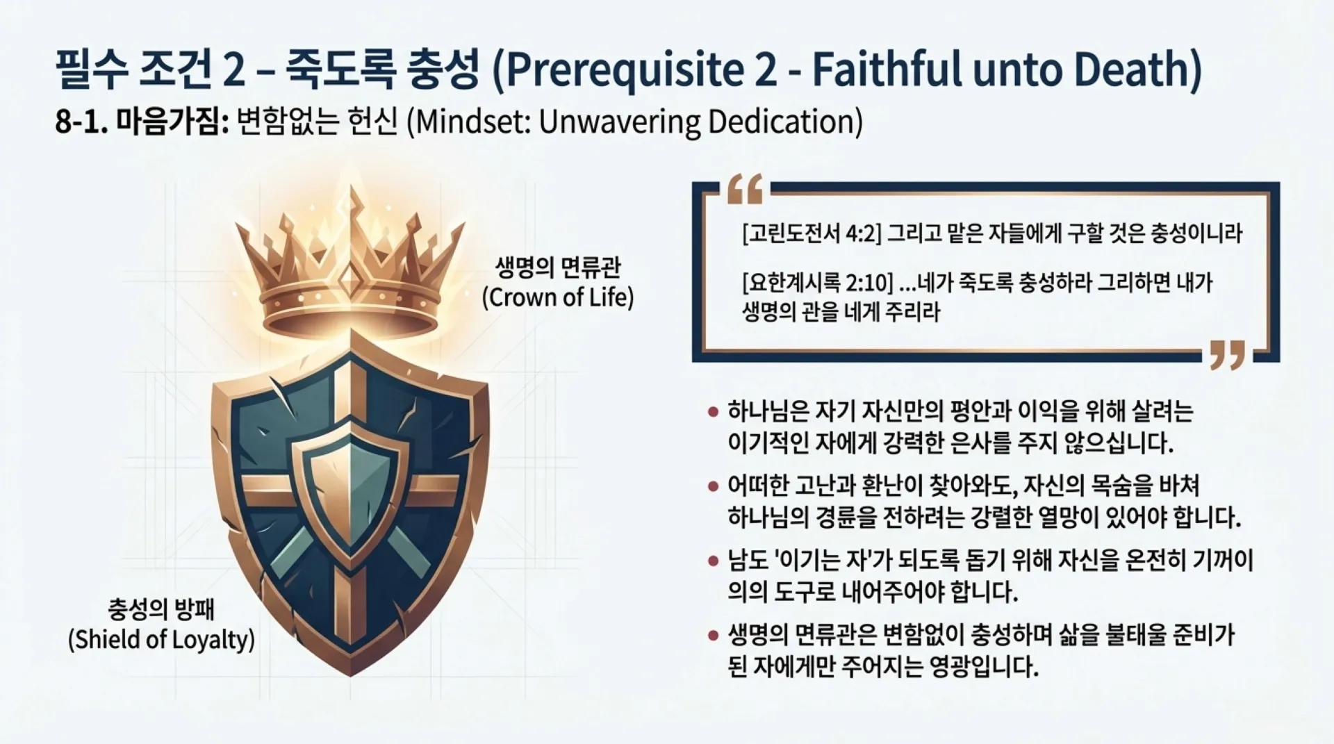 "그리고 맡은 자들에게 구할 것은 충성이니라" (고린도전서 4:2)