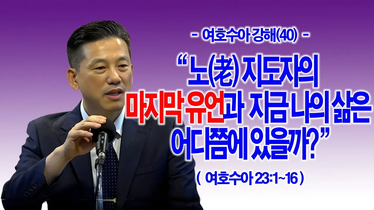 제목: [여호수아 강해(40)] 노(老) 지도자의 마지막 유언과 지금 나의 삶은 어디쯤에 있을까?(수23:1~16)_동탄명성교회 정보배목사