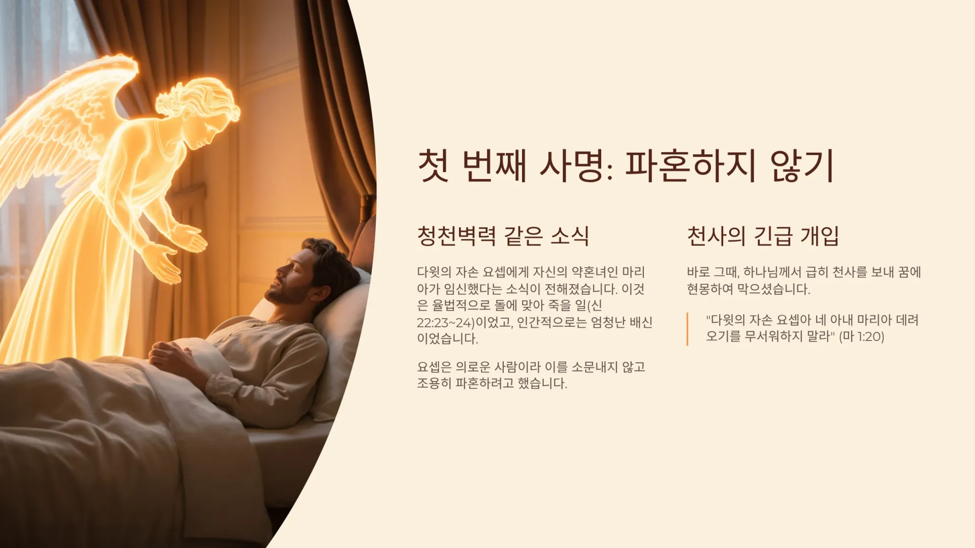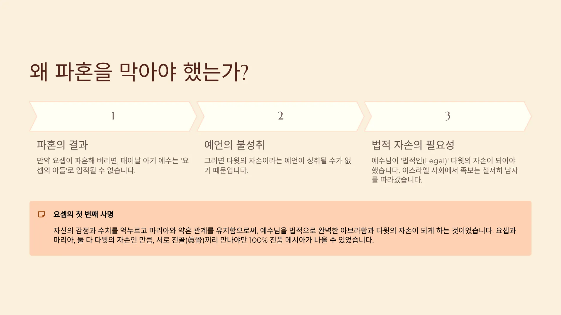 3. 요셉의 첫 번째 사명으로서, 왜 그는 배신감을 참고 파혼하지 않아야 했는가?