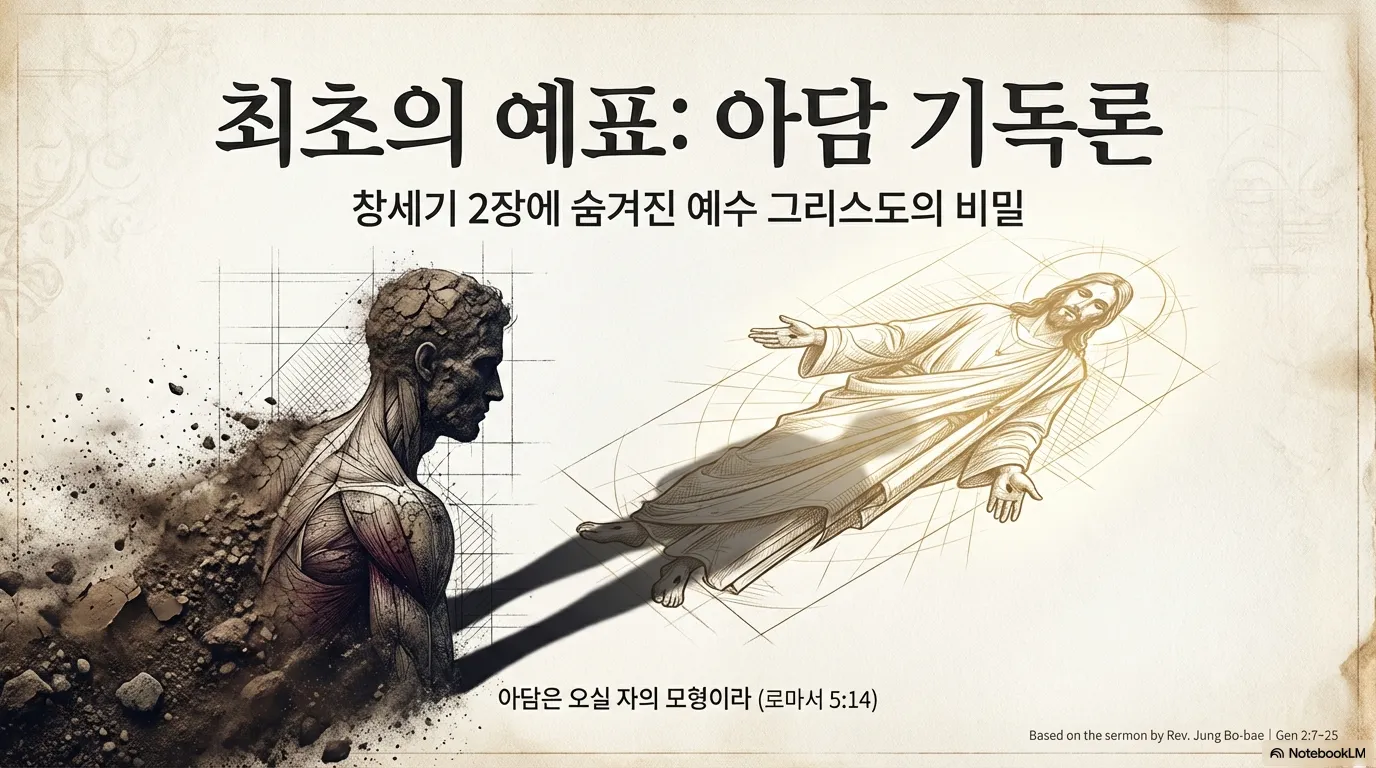 고로 만약 우리가 구약성경을 읽으면서도 예수님을 발견하지 못한다면, 그것은 껍데기만 핥는 것이다. 지식은 늘어날지 몰라도 생명은 없다. 자기 자랑으로 흐를 뿐이다. 그러나 구약의 인물들 속에 숨겨진 예수님을 찾아낼 때, 말씀은 살아서 내 영혼의 양식이 되고 능력이 된다. 그래서 이번 시간에는 그 퍼즐의 첫 번째 조각이자, 인류의 시조인 '아담'을 통해 계시된 예수 그리스도의 비밀을 파헤쳐 보려 한다. 흙으로 빚어진 첫 사람 아담 속에, 어떻게 하늘에 속한 둘째 아담 예수 그리스도가 숨겨져 있었는지, 그 신비로운 기독론의 세계로 들어가 보자.
