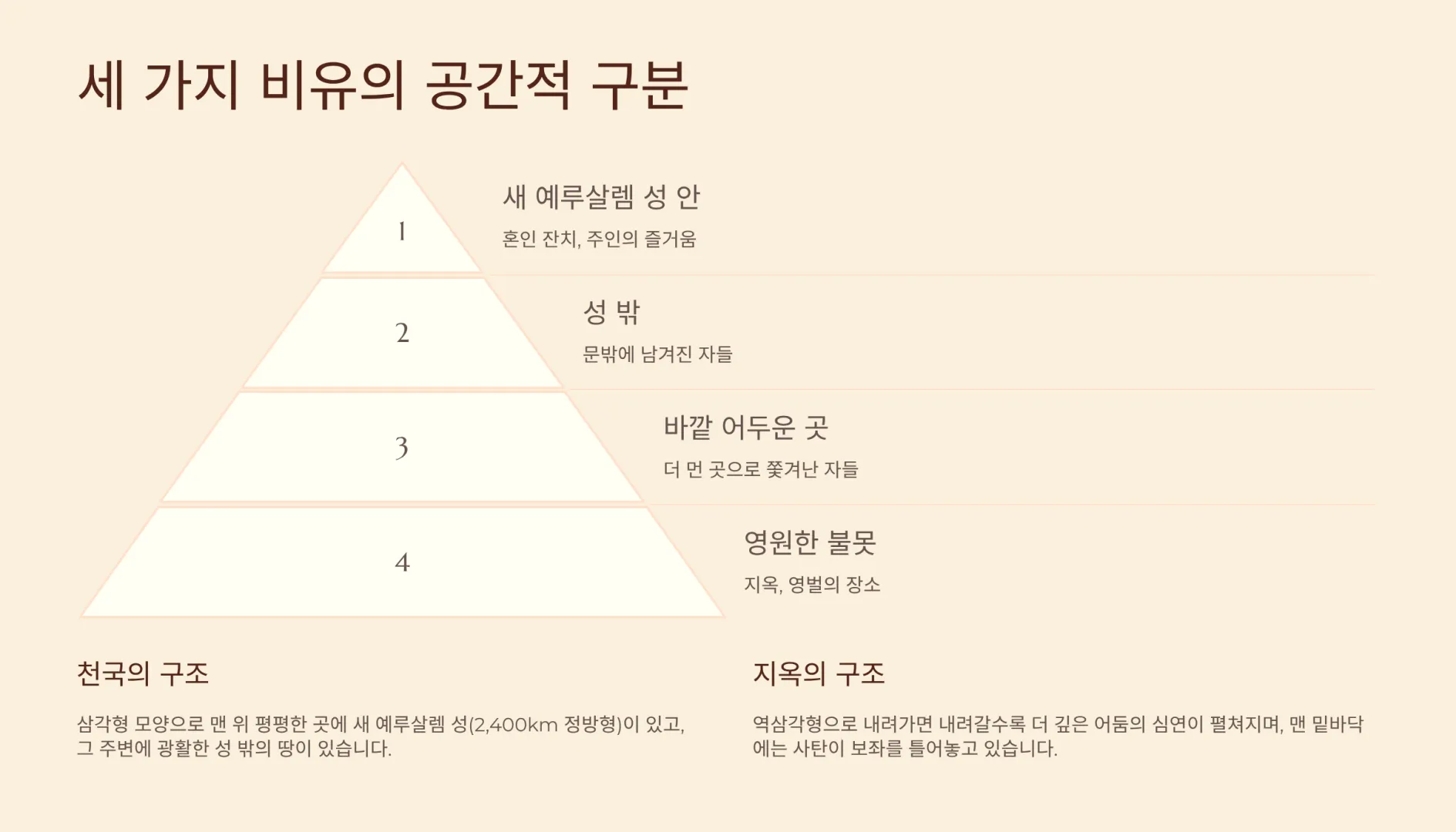 2. 세 가지 비유는 무엇을 의미하는가? (천국의 공간과 시간의 비밀)