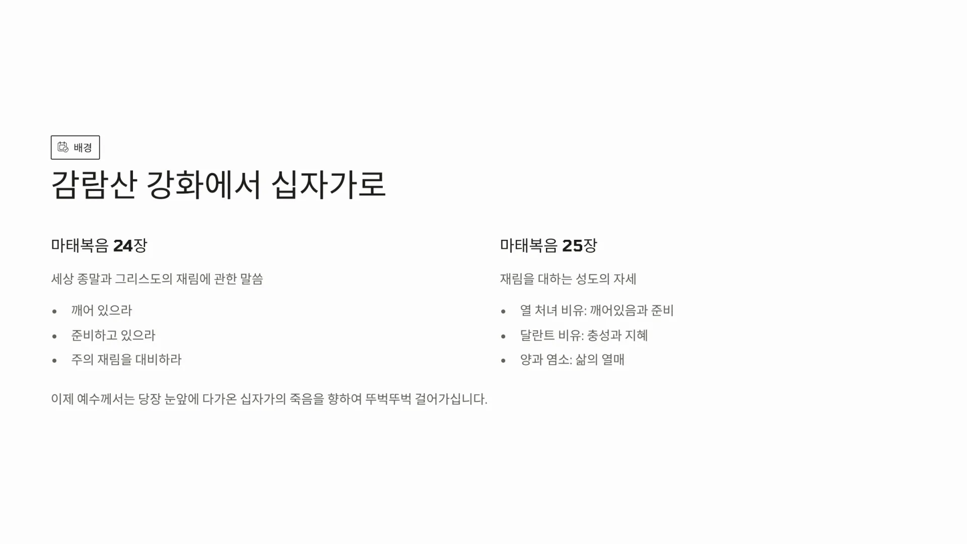 4. [마태복음강해(54)] 열 처녀와 달란트 비유, 양과 염소의 비유에 나타난 성도들의 3가지 최후 거처들(01)(마25:1~46)_2025-12-10(수)