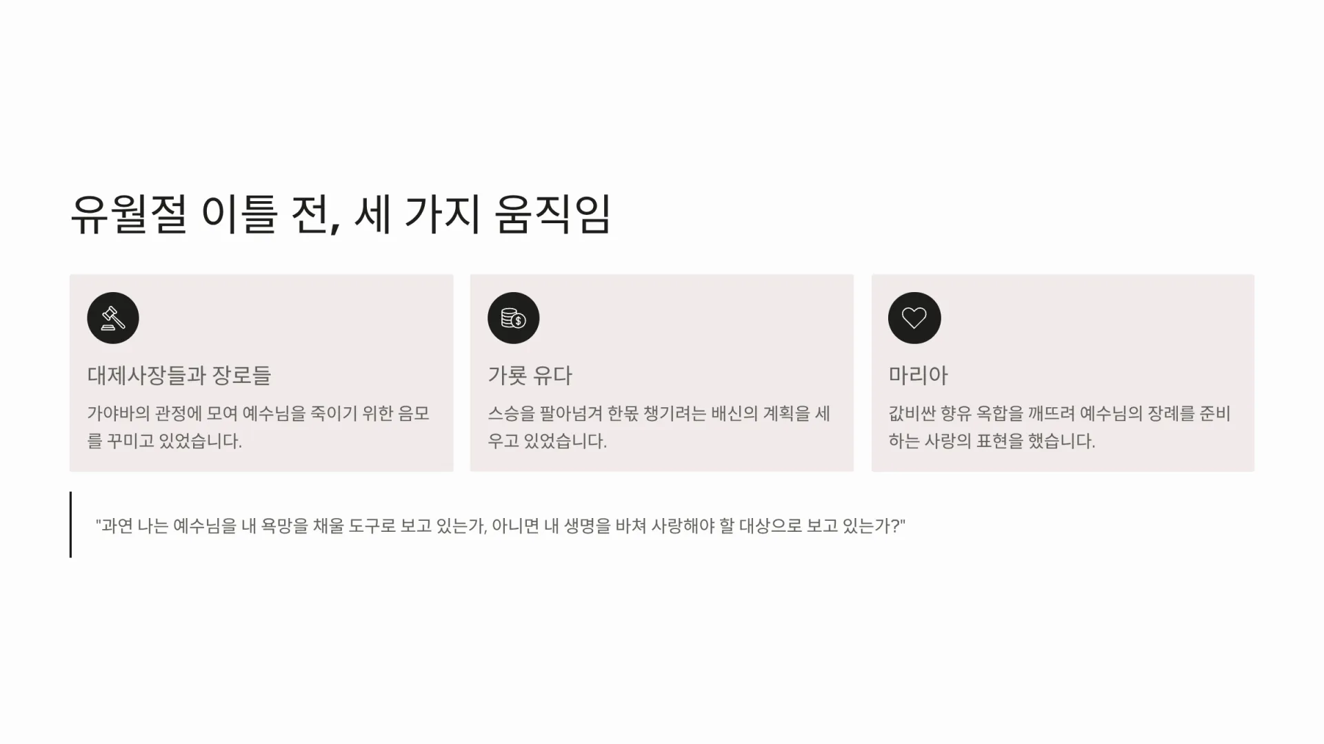 1. 들어가며: 유월절 이틀 전, 두 가지 음모와 하나의 헌신