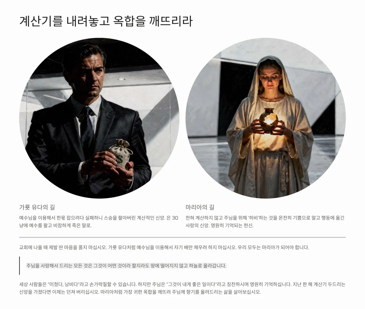 9. 나오며: 계산기를 내려놓고 옥합을 깨뜨리라