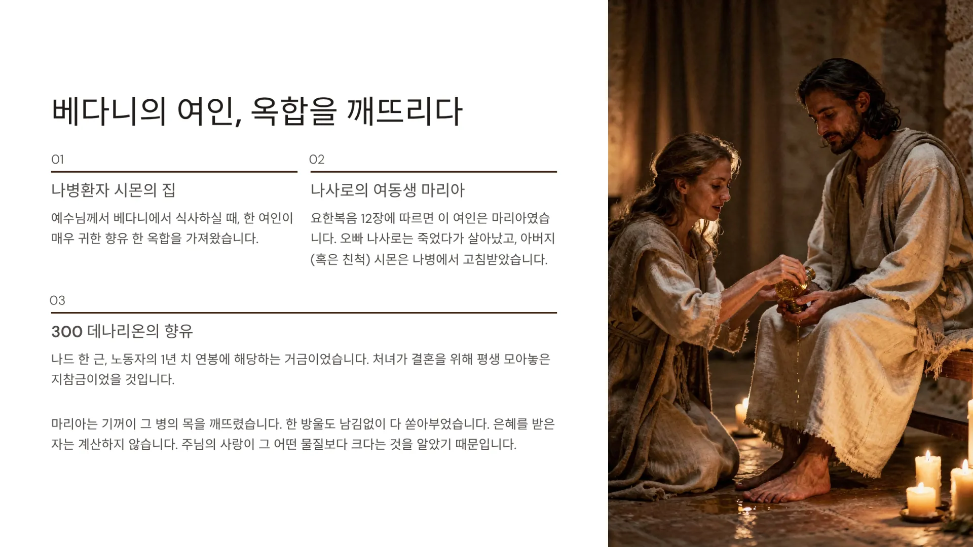 2. 베다니의 여인은 왜 옥합을 깨뜨렸는가?