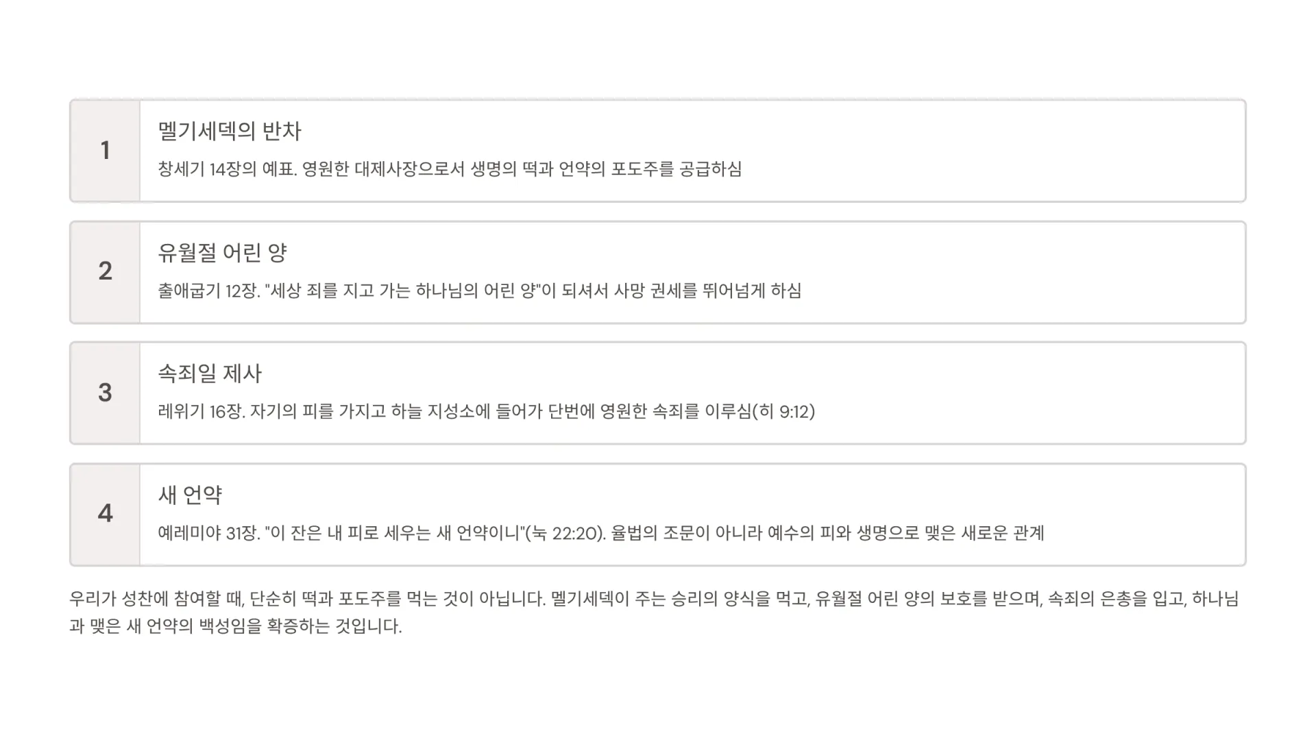 6. 성만찬은 유월절 식사와 무엇이 다른가? (4가지 성취)