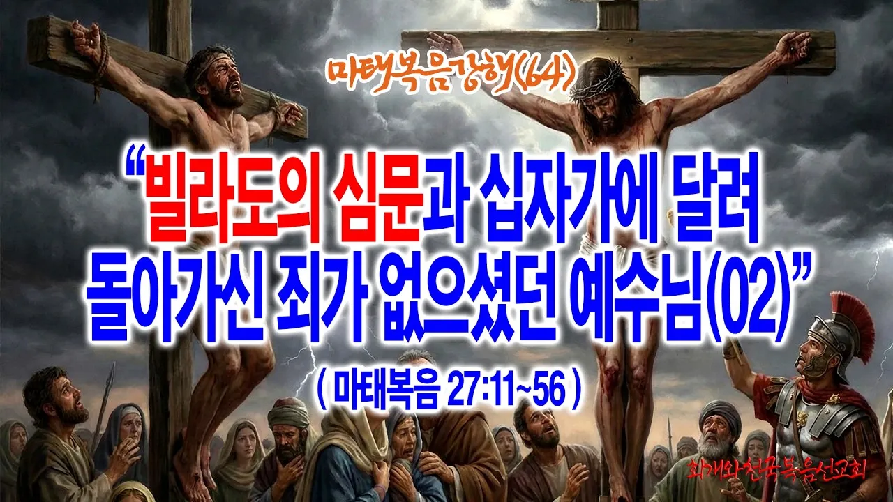 제목: [마태복음강해(64)] 빌라도의 심문과 십자가에 달려 돌아가신 죄가 없으셨던 예수님(02)(마27:11~56)_동탄명성교회 정보배 목사